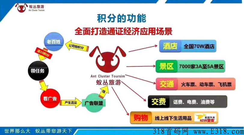 免费注册,零门槛,不伤人脉,不用投资,靠努力一样可以赚退休金,上星级达人不卡级,新人注册后90天任务保护期,足够新人了解蚁丛旅游的实力和发展,让团队长的付出最大限度得到成绩,蚁丛旅游推广方式灵活,不影响主业经营,适合地推陌生人市场,接地气,落地实实在在,真正老百姓受益,让旅游带动国家各行各业经济发展 ,真正互联网赋能实体, 让旅游从此无套路,忠诚粉丝真正免费,世界那么大,跟着蚁丛游天下!